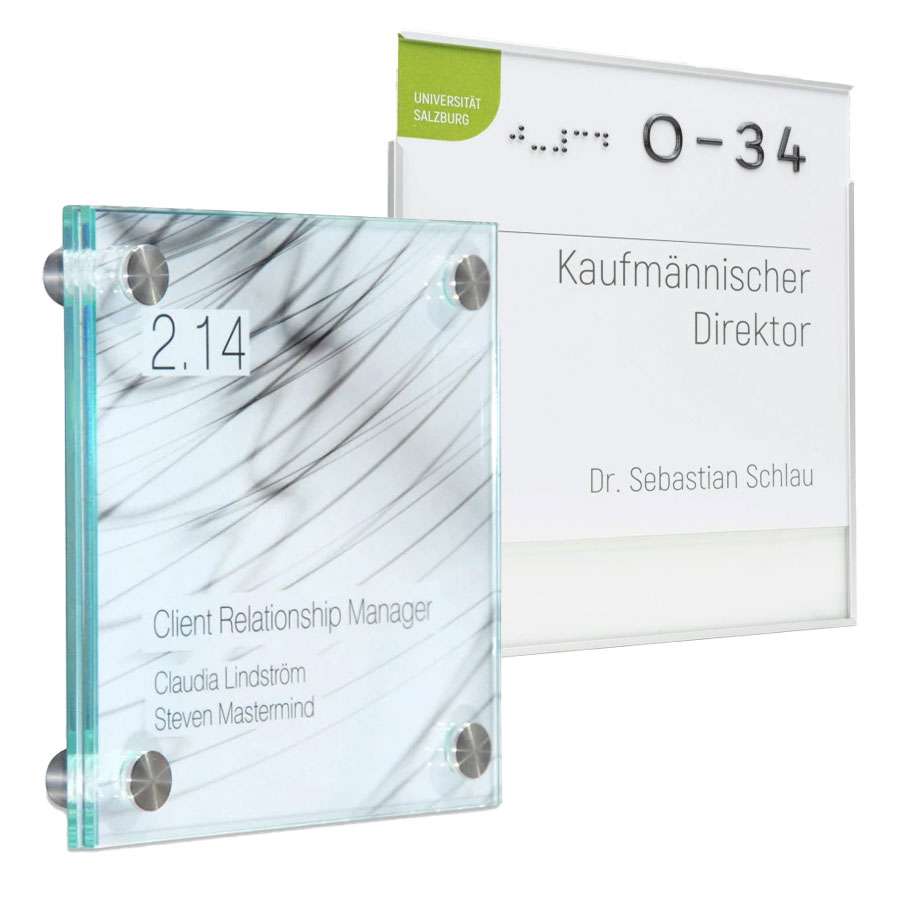 Zur Beschilderung von Büros, Kanzleien, Gemeinden, Kindergärten, Schulen, Firmen, Universitäten, Seniorenheimen, Sportstätten und Ämtern. Die große Auswahl an Materialien, Größen und Formgebungen erfüllen zahlreiche Kundenanforderungen. In unserem Schilder Shop finden Sie für Ihr Gebäude die passenden Türschilder zum selber Beschriften. Perforierte Papiereinleger DIN A4 unterstützen sie bei der Beschriftung ihrer Türschilder.